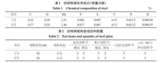 鋼中化學(xué)成分及H含量如表1所示和試驗(yàn)項(xiàng)目、數(shù)量如表2所示